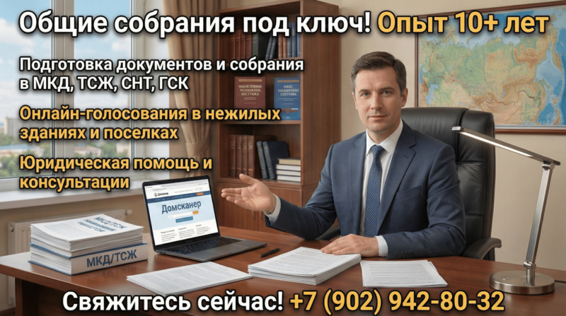 Подготовка и проведение общего собрания собственников в любом доме, ТСЖ, СНТ или нежилом здании в России. Опыт с 2015 года.